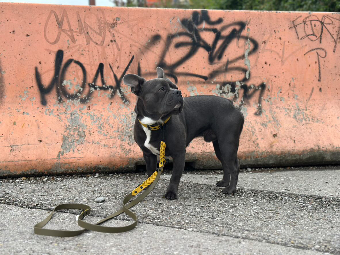 Diese Leine in Oliv mit der Akzentfarbe Senf Gelb ist robust, pflegeleicht und vielseitig einsetzbar. Made in Germany und mit Liebe von Hand gefertigt. Passe deine Leine individuell an deine Bedürfnisse an, dank frei wählbarer Länge, Verschlussfarbe, sowie Verschlussgröße.
