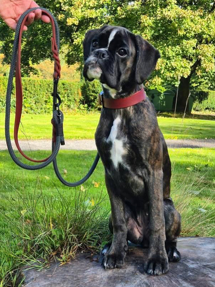• Material: Hochwertiges, stabiles Leder in 15 mm Breite (auch in 12 mm verfügbar, allerdings nur für sehr zarte und kleine Hunde) und Robustes Tau in Kombination.